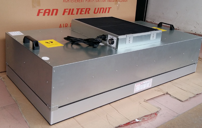 FFU工作通電后,風(fēng)機(jī)運(yùn)轉(zhuǎn),離心風(fēng)機(jī)將空氣吸入,空氣到達(dá)FFU靜壓箱內(nèi),利用風(fēng)機(jī)壓力的作用空氣到達(dá)高效率過濾,通過高效率過濾后的空氣達(dá)到100級(美國聯(lián)邦209E標(biāo)準(zhǔn))然后均勻地送出。