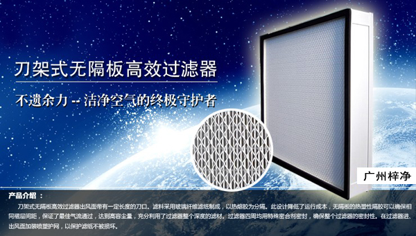 刀架式帶刀邊無隔板高效過濾器產品特色: