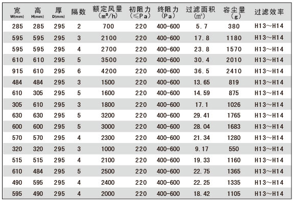過濾效率:H13-H14 MPPS
