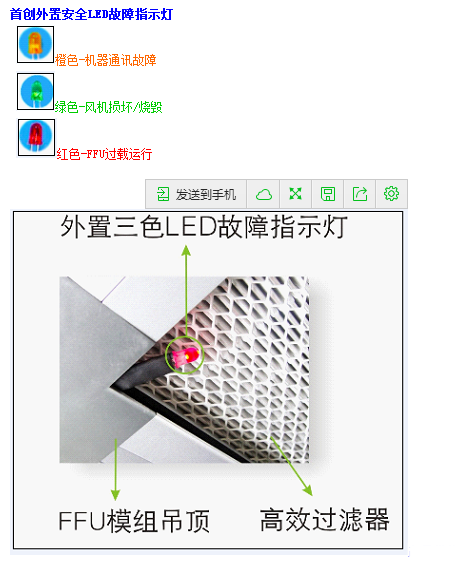 5.FFU采用獨特的風道風速均勻,整個出風面以0.45M/S風速均勻送出。